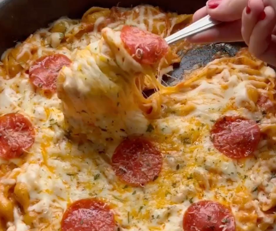 This dish is basically a pizza party in a pan. It’s got that savory, pepperoni-kissed flavor, melty cheese pulls, and the hearty bite of perfectly cooked pasta. Oh, and did we mention it’s baked to bubbly, golden perfection?