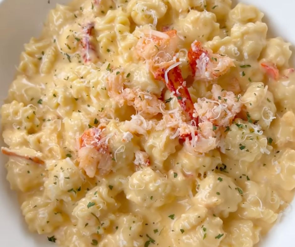 Now for the grand finaleāgently fold in the buttery lobster you set aside earlier. Give it a minute or two to heat through. Sprinkle with extra parmesan on top, and serve it up HOT.