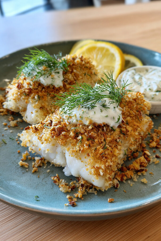 If you’re looking for a dinner that feels indulgent yet light, crispy yet wholesome, this Almond Panko Crusted Baked Cod with Greek Yogurt Dill Tartar Sauce truly delivers. It’s proof that healthy eating doesn’t have to be boring—and that baked fish can absolutely steal the show.