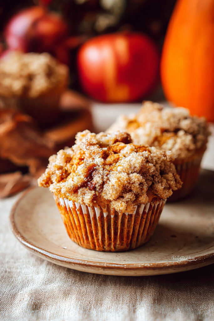Picture this: moist pumpkin-spiced muffins studded with juicy chunks of apple, all crowned with a buttery cinnamon streusel topping that bakes up golden and crunchy. The combination is a little sweet, a little spiced, and oh-so-comforting—like a warm hug in muffin form.