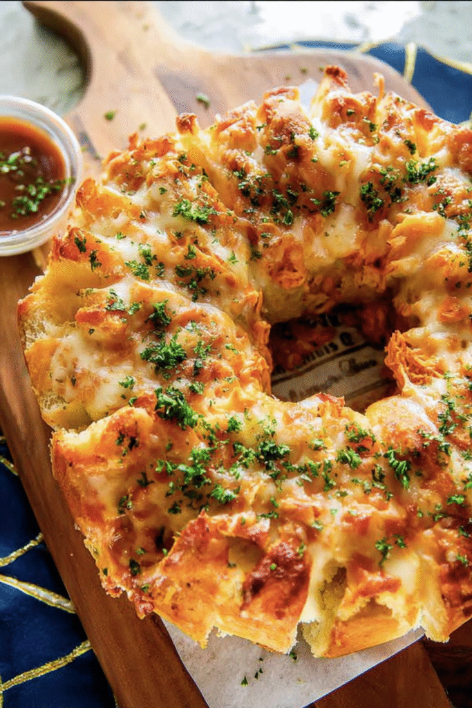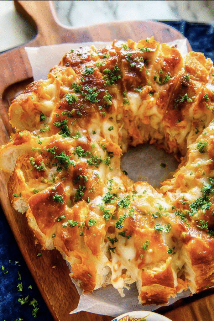 Serving up Buffalo Chicken Pull Apart Bread is an easy way to bring spicy, cheesy Buffalo chicken flavors to the table—with zero mess and maximum fun. This confident, crowd-pleasing recipe combines shredded chicken coated in bold Buffalo sauce, gooey melting cheese, and buttery biscuit dough stacked into pull-apart pieces. The result? Warm, savory bites that taste like hot wings and cheesy bread all in one.