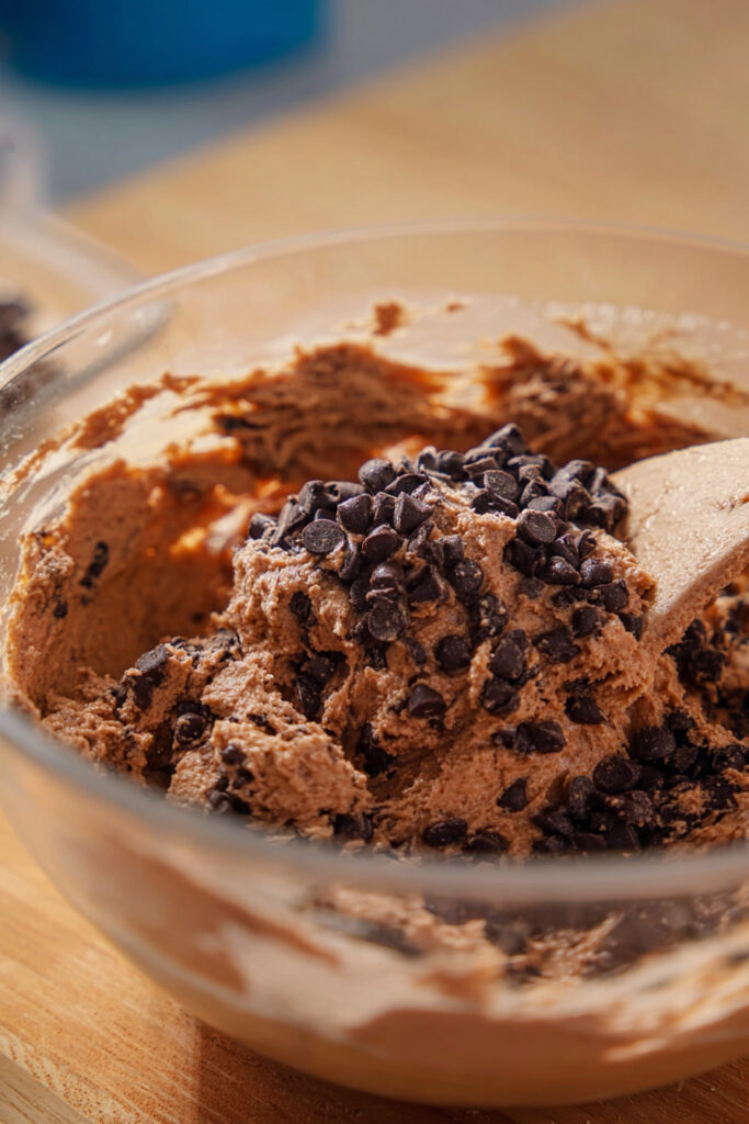 Stir in mini chocolate chips (or your favorite mix-ins). At this point, you’ll be tempted to grab a spoon and eat it all right away—and honestly, I won’t blame you!