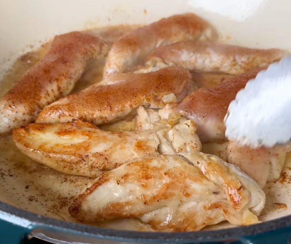 - Season the chicken tenders with Creole seasoning, then sear for 3-4 minutes per side until golden brown.