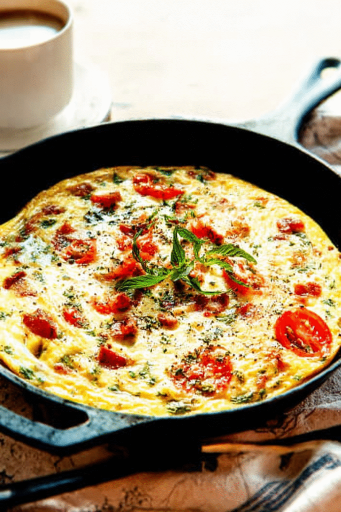 Let the frittata rest for 5 minutes before slicing into wedges. Garnish with fresh herbs and serve with toast, salad, or fruit.