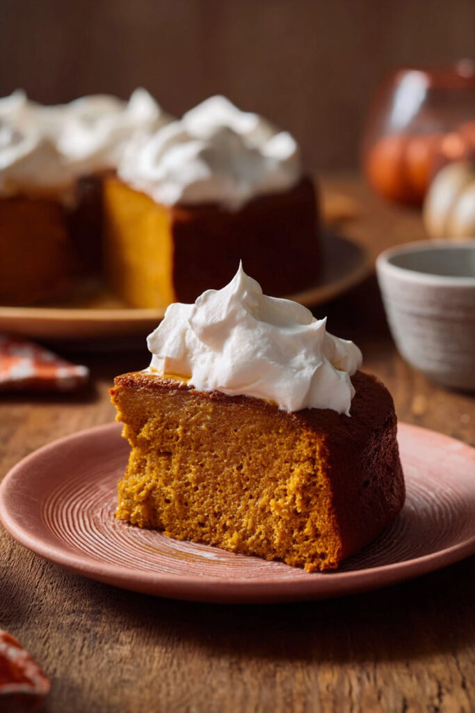 This cake is rich, moist, and indulgent—but balanced by the natural sweetness of pumpkin and the lightness of maple whipped cream.