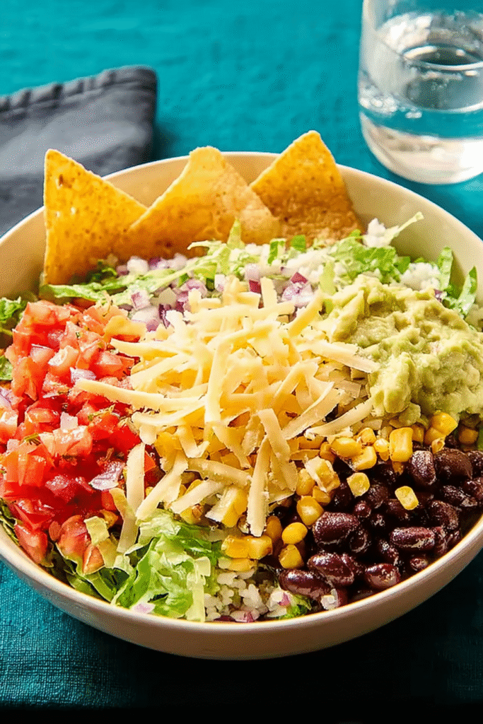 • On-the-go: Use a mason jar — layer the heavier ingredients at the bottom (beans, corn, rice) and lighter ones on top (lettuce, avocado) to keep things fresh.