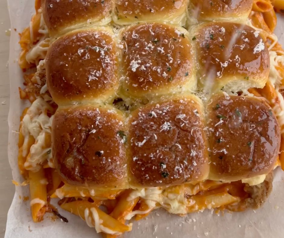 It’s like chicken parm meets vodka pasta meets party slider—and it’s just as glorious as it sounds. Every bite is saucy, cheesy, crunchy, and soft all at once. Literal carb heaven.