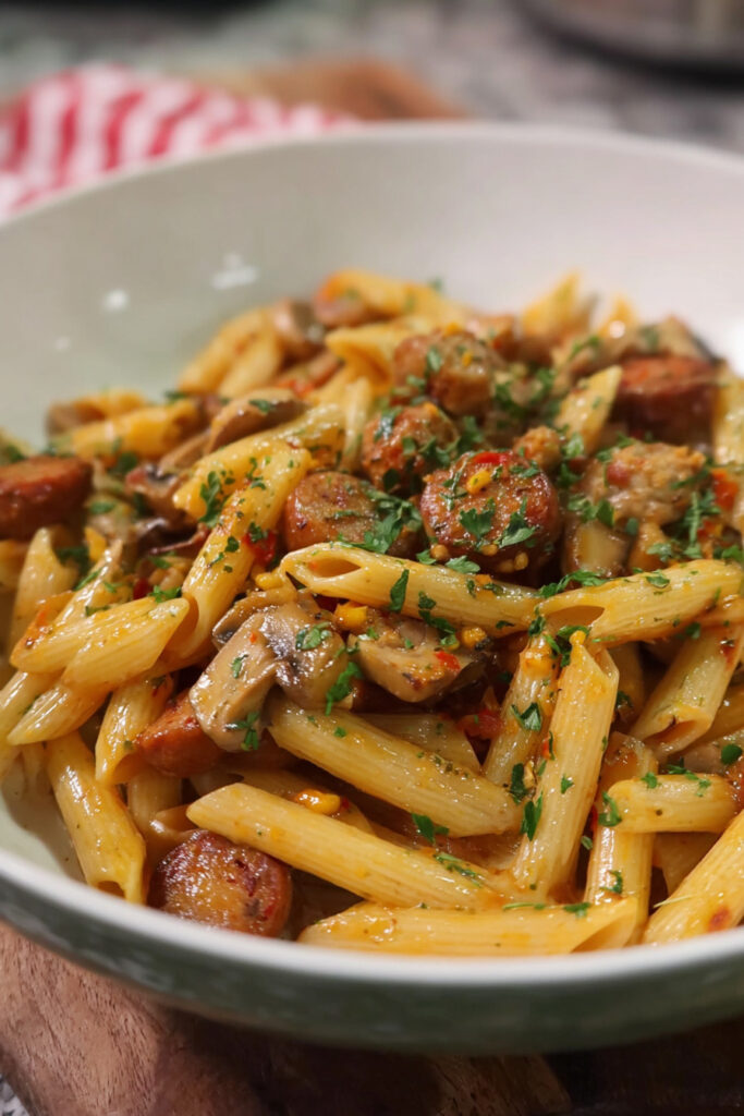 There you have it—Penne with Mushrooms and Spicy Sausage that’s creamy, hearty, and bursting with flavor. It’s one of those dishes that feels special enough for entertaining but easy enough for a busy weeknight.