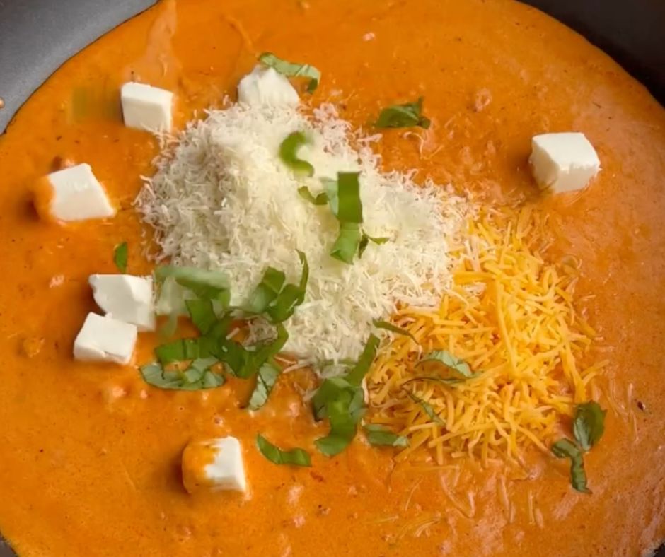 “Pink sauce” might sound trendy, but it’s actually a classic in disguise! It’s simply a creamy tomato-based pasta sauce—a cross between a marinara and a cream sauce. You get the tanginess of tomatoes, the richness of cream, and the cheesy pull of mozzarella and cheddar. It’s indulgent, flavorful, and totally addictive.