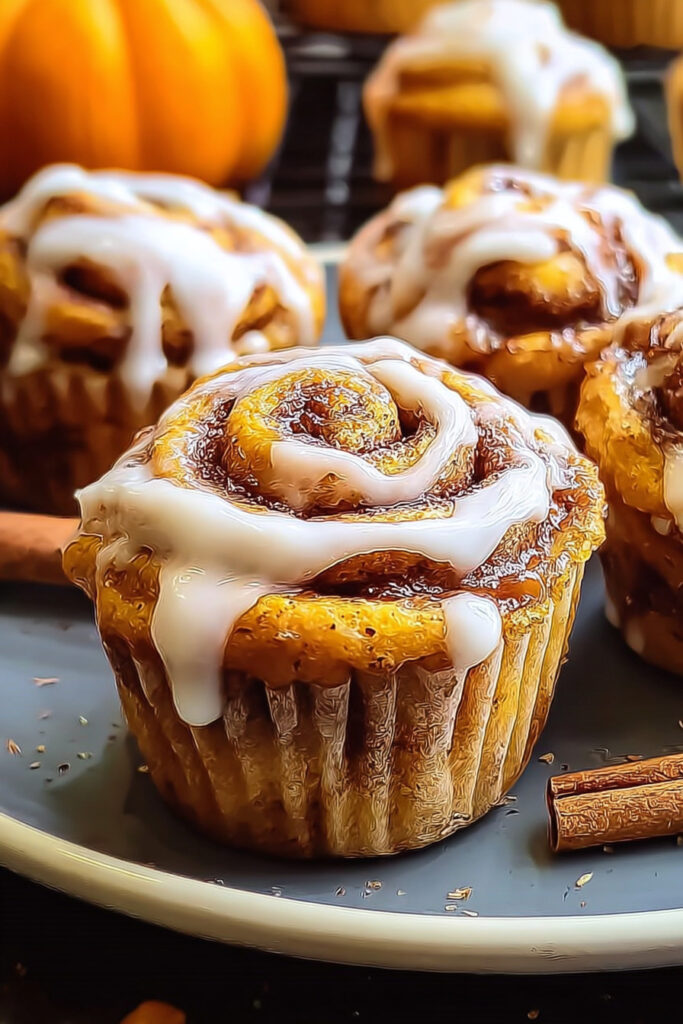 Think of them as the best of both worlds: the ease of muffins with the flavor of cinnamon rolls. Add pumpkin into the mix, and you get a moist, fluffy, warmly spiced muffin swirled with cinnamon sugar and topped with a dreamy glaze. They’re perfect for cozy mornings, weekend brunches, or even as a sweet afternoon snack with coffee.