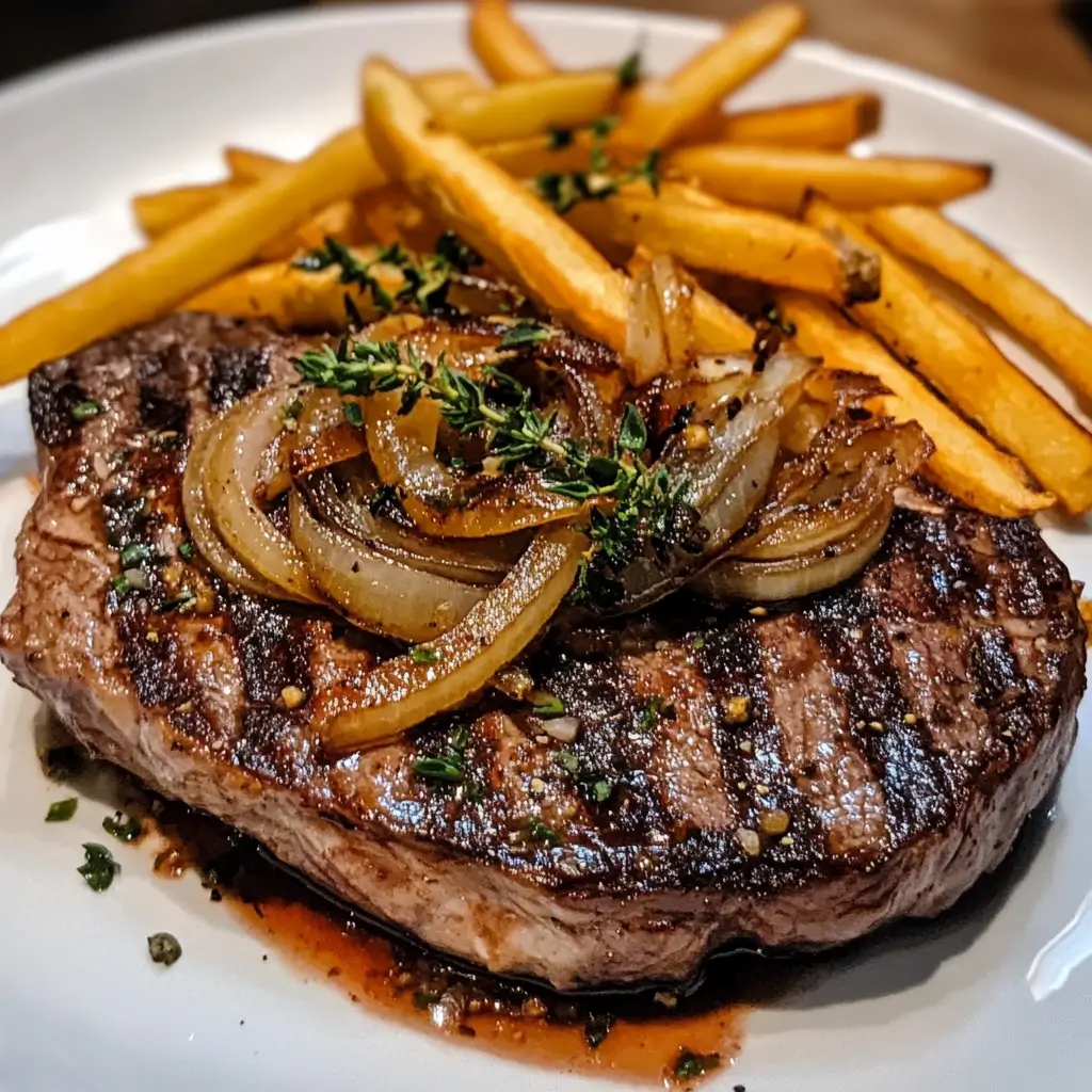 Ribeye Steak with French Onions & Fries: A Bistro Classic at Home