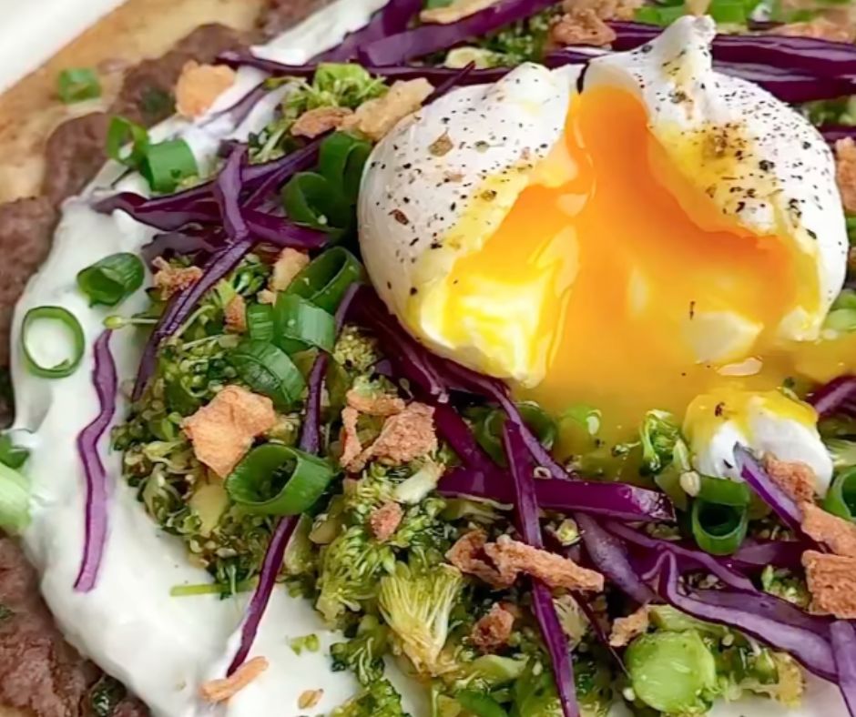 Top each taco with your crispy broccoli slaw, a drizzle of white sauce, and your toppings of choice. That poached egg on top? Chef’s kiss. šŸ’‹