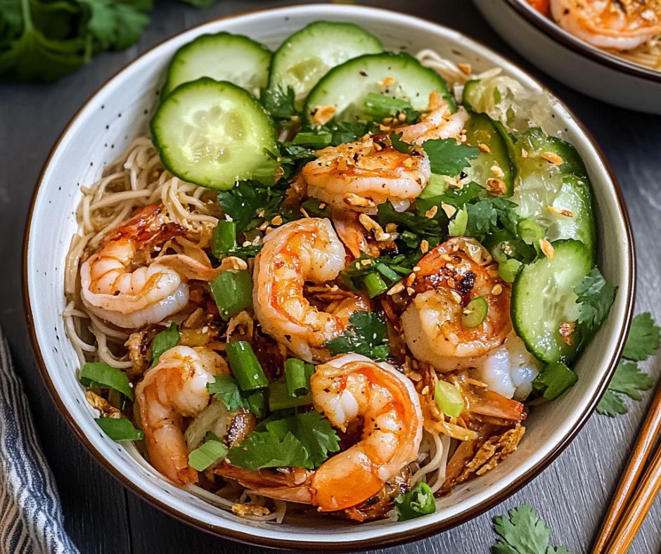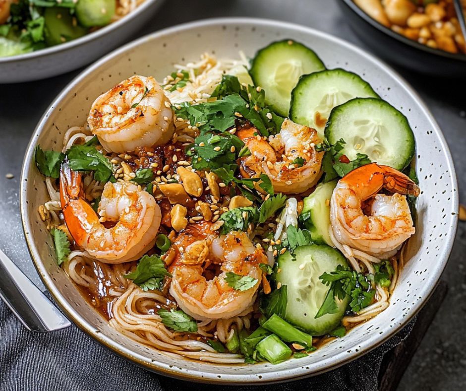 This bowl pays homage to dishes like Vietnamese bún thịt nướng, traditionally made with pork. Here, shrimp takes center stage, adding a lighter and quicker-cooking twist cdn.greenchef.com. It channels vibrant Southeast Asian flavors through garlic, ginger, and chili, while keeping it home-kitchen friendly.