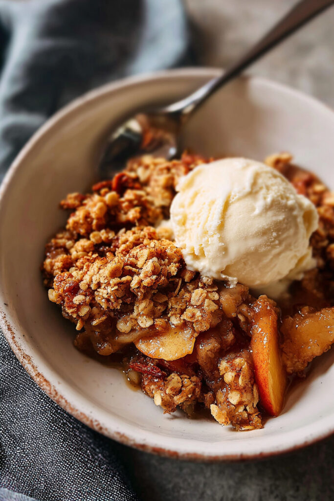 Let the Apple Crumble rest for about 10 minutes before serving. This gives the filling time to set slightly, making it easier to scoop.